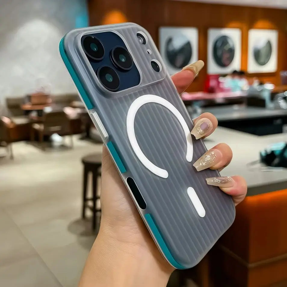 • Luxury Matte Stripe Design: Stylish bright matte stripes on a crystal-clear body create a sleek, modern look that enhances your iPhone’s original color.
